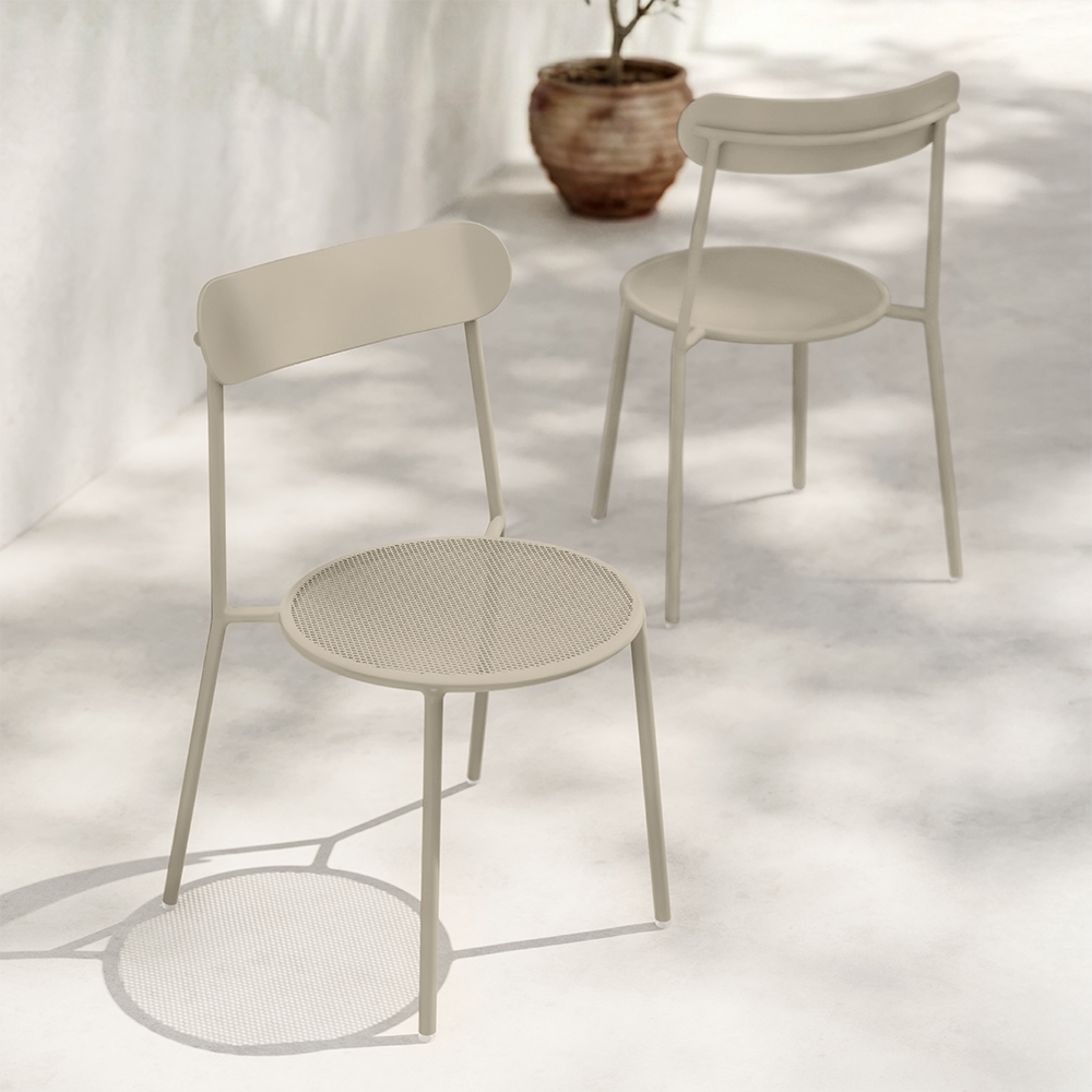 Die klare, zeitlose Formensprache wirkt leicht und unaufgeregt. Das pulverbeschichtete Stahlgestell ist wetterfest, rostfrei und langlebig – gemacht für den täglichen Einsatz unter freiem Himmel. Ob auf Terrasse, Balkon, im Garten oder im Café-Außenbereich: AMURANO fügt sich mühelos ein und wirkt dabei stets stimmig.