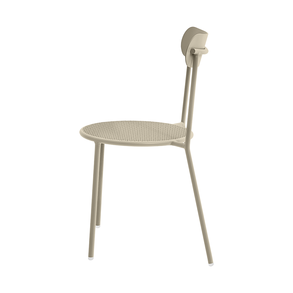 Die Sitzfläche aus atmungsaktivem Mesh sorgt für ein luftiges, angenehmes Sitzgefühl, auch an warmen Tagen. Sie trocknet schnell und bleibt komfortabel. Die sanft gebogene Rückenlehne unterstützt den Rücken dezent und lädt zum Verweilen ein – ohne die klare Linie des Designs zu verlieren.
