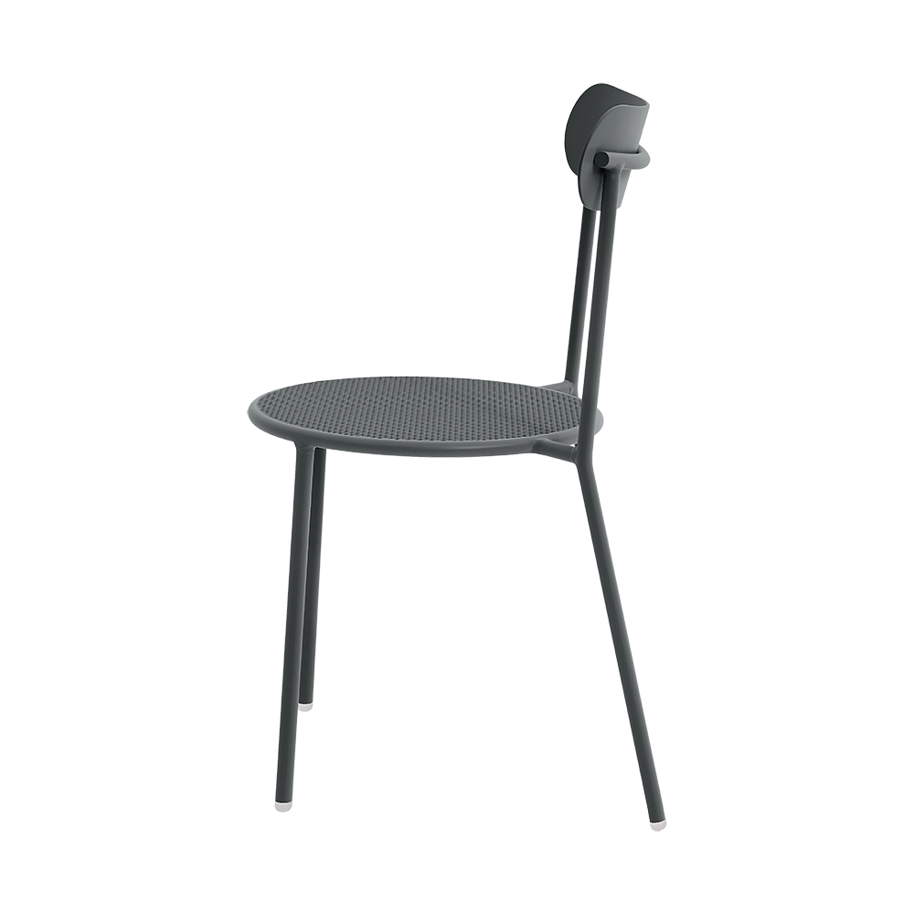 Die Sitzfläche aus atmungsaktivem Mesh sorgt für ein luftiges, angenehmes Sitzgefühl, auch an warmen Tagen. Sie trocknet schnell und bleibt komfortabel. Die sanft gebogene Rückenlehne unterstützt den Rücken dezent und lädt zum Verweilen ein – ohne die klare Linie des Designs zu verlieren.