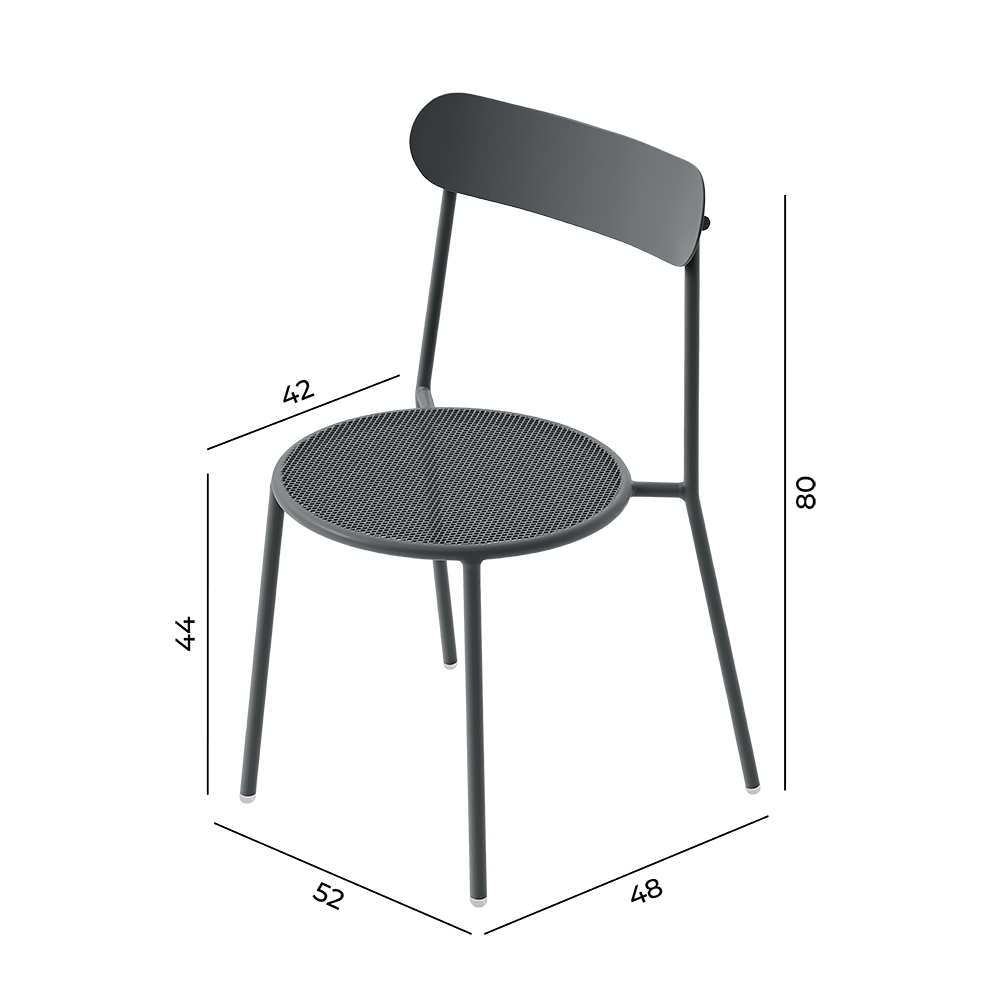 Die klare, zeitlose Formensprache wirkt leicht und unaufgeregt. Das pulverbeschichtete Stahlgestell ist wetterfest, rostfrei und langlebig – gemacht für den täglichen Einsatz unter freiem Himmel. Ob auf Terrasse, Balkon, im Garten oder im Café-Außenbereich: AMURANO fügt sich mühelos ein und wirkt dabei stets stimmig.