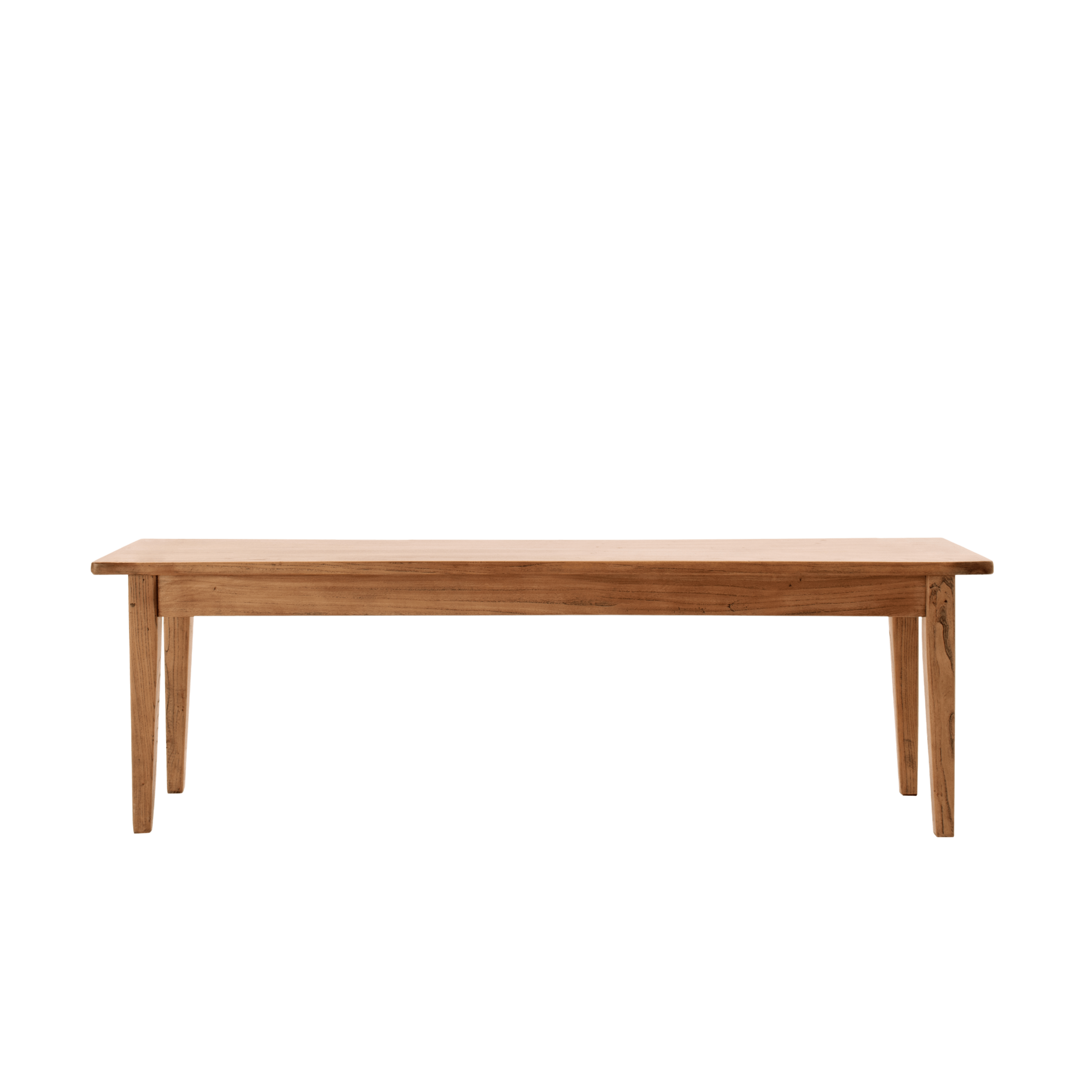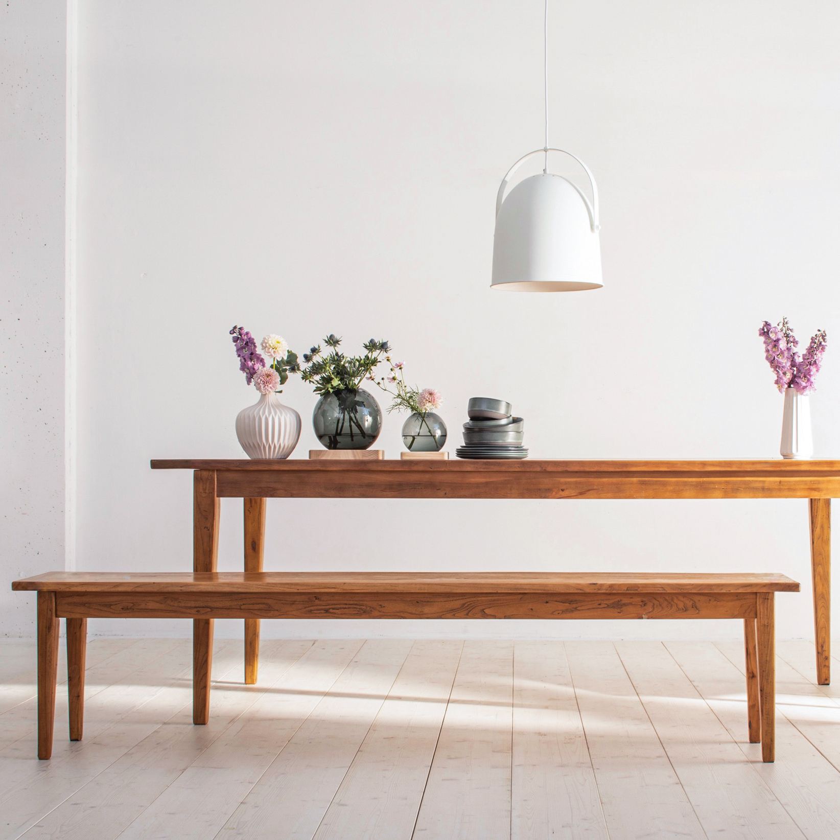 - Die Sitzbank aus recyceltem Ulmenholz ist ein stilvoller Begleiter für den Esstisch ARAVELLO.
