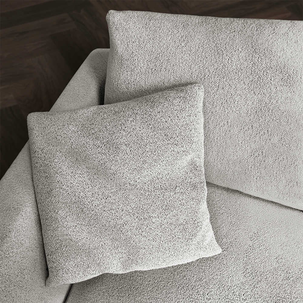 - Hochwertiger, gewebter Boucléstoff – pflegeleicht, strapazierfähig und lichtecht