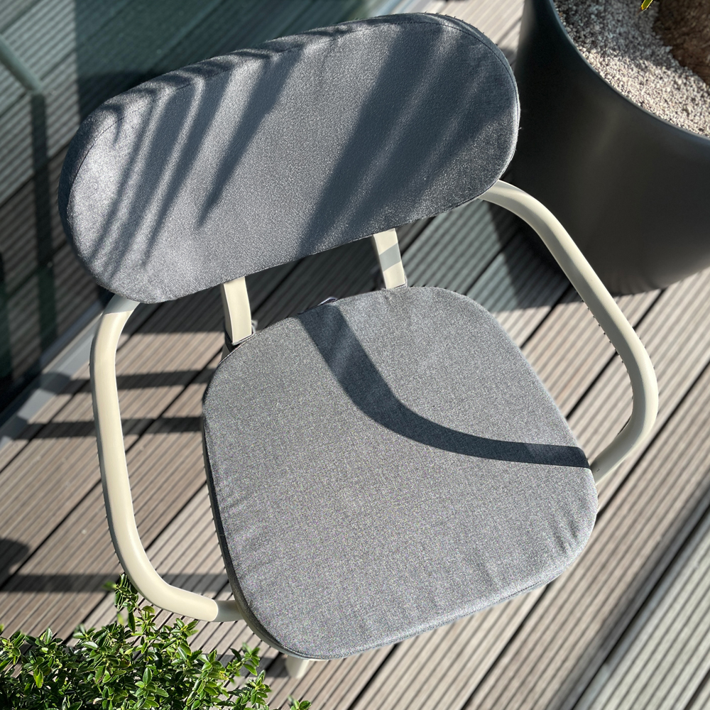 - Das Set besteht aus einem Sitzkissen sowie einem Rückenlehnen Kissen.