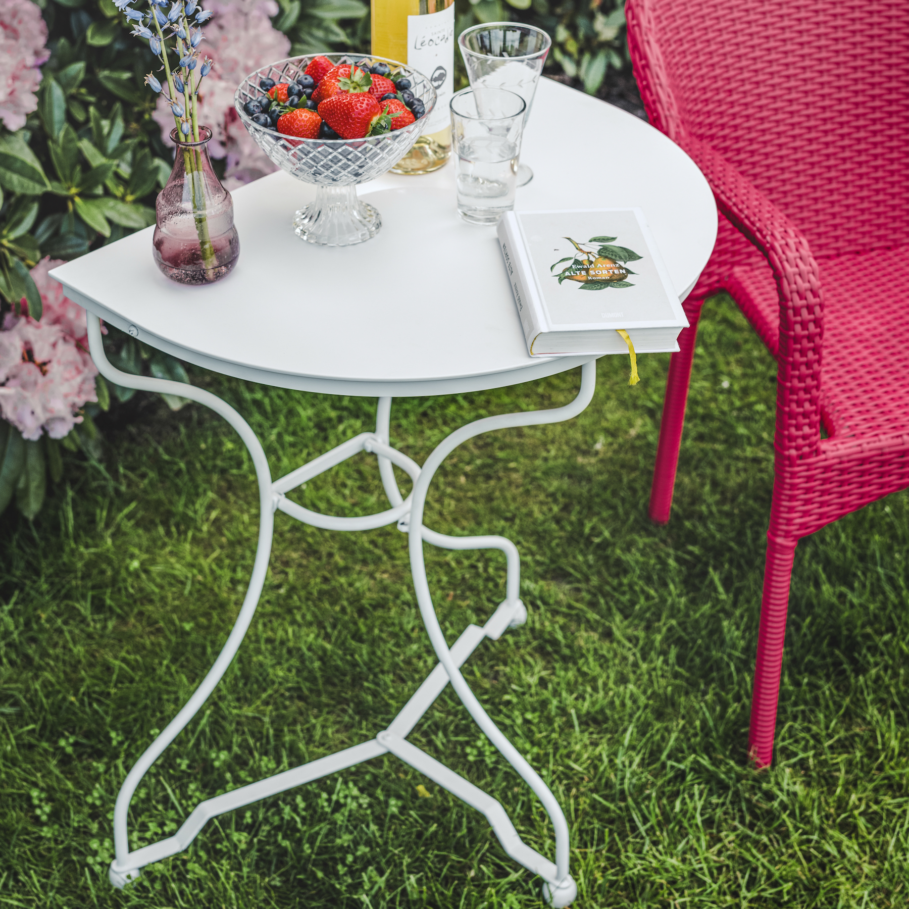 Der hochwertige Metalltisch DECLICHY ist an Vielfältigkeit kaum zu übertreffen und bietet zahlreiche Kombinationsmöglichkeiten im Innen- sowie Außenbereich. Drinnen kann er als Konsolentisch oder Beistelltisch genutzt werden und bietet Abstellfläche für deine Lieblingsdeko. Im Außenbereich lässt er sich in einen eleganten Cafétisch verwandeln, an dem du deinen Espresso am Morgen genießen kannst. Durch seine hochwertige Pulverbeschichtung ist DECLICHY besonders wetterbeständig. Auch für den kleineren Balkon eignet er sich aufgrund seiner halbrunden Form und klappbaren Konstruktion hervorragend. Ganz ohne Werkzeug ist DECLICHY schnell aufgebaut und direkt einsatzbereit. Wähle die Farbe aus, die am besten zu deinem Stil passt – du hast die Wahl zwischen fünf zeitlosen Farben, die sich mühelos mit dem Rest deiner Einrichtung kombinieren lassen.
