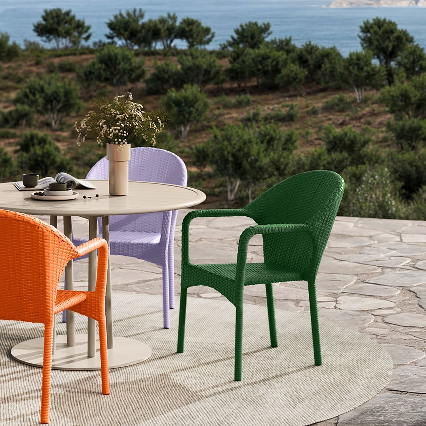 Seine Vielseitigkeit bringt ENVIGO an viele Einsatzorte: der stapelbare Flechtstuhl ist für jede Umgebung und jeden Geschmack die richtige Wahl. Der Stuhl ist aus pflegeleichtem Polyethylen-Kunststoff gefertigt und wetter- sowie UV-beständig. Damit ist ENVIGO für den Einsatz im Garten und auf dem Balkon geeignet, kann jedoch auch im Innenbereich Akzente setzen. Das Gestell aus Aluminium mit Stahlverstärkung ist federleicht und stabil zugleich. Die handgewebte Flechtstruktur überzeugt durch ihren filigranen Charakter, während die leicht geschwungenen Armauflagen für besondere Bequemlichkeit sorgen.