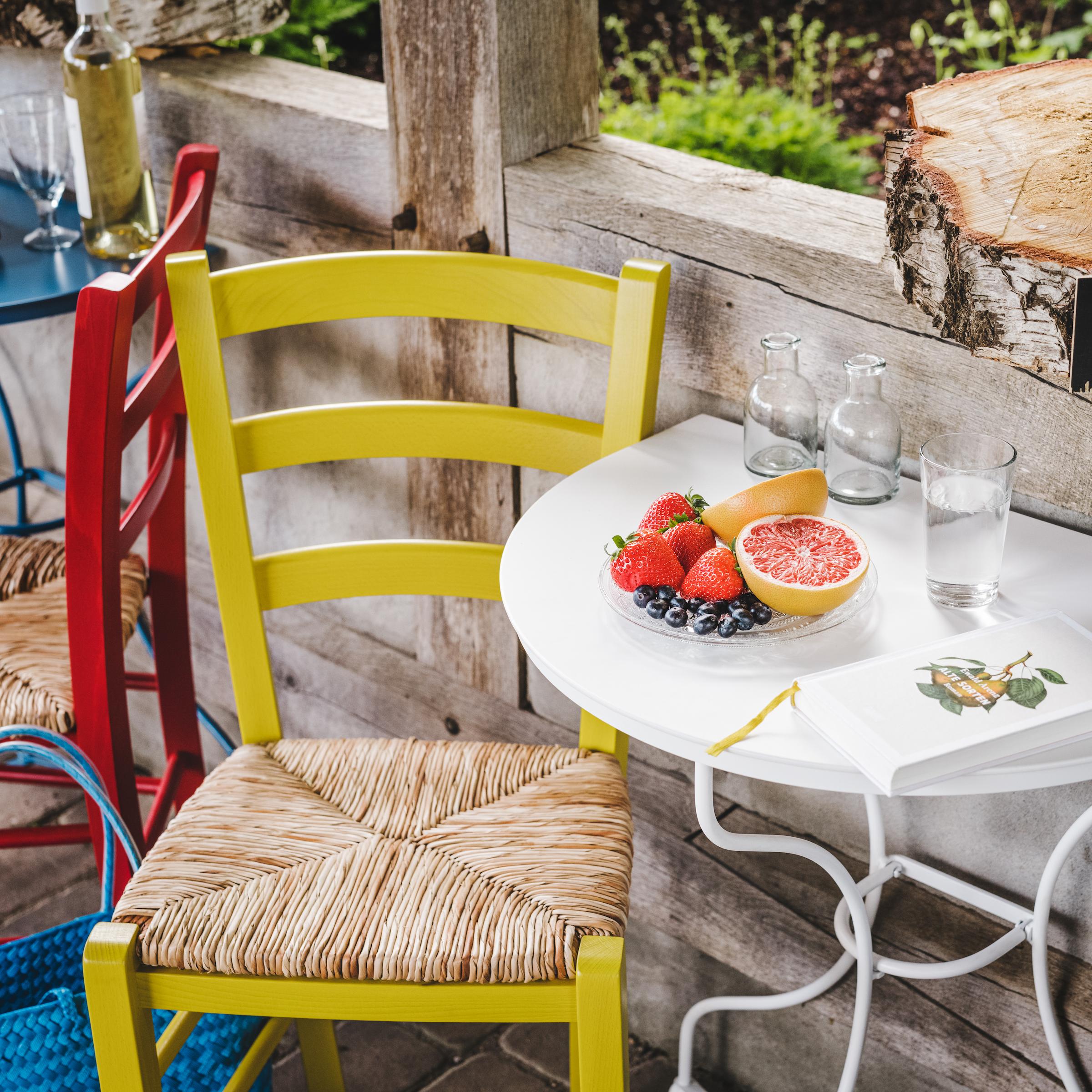 - Erhältlich in klassischen Farbtönen wie Weiß und Blau sowie in warmen Rot- und Gelbnuancen, lässt sich der Stuhl harmonisch in verschiedenste Wohn- und Außenbereiche integrieren.