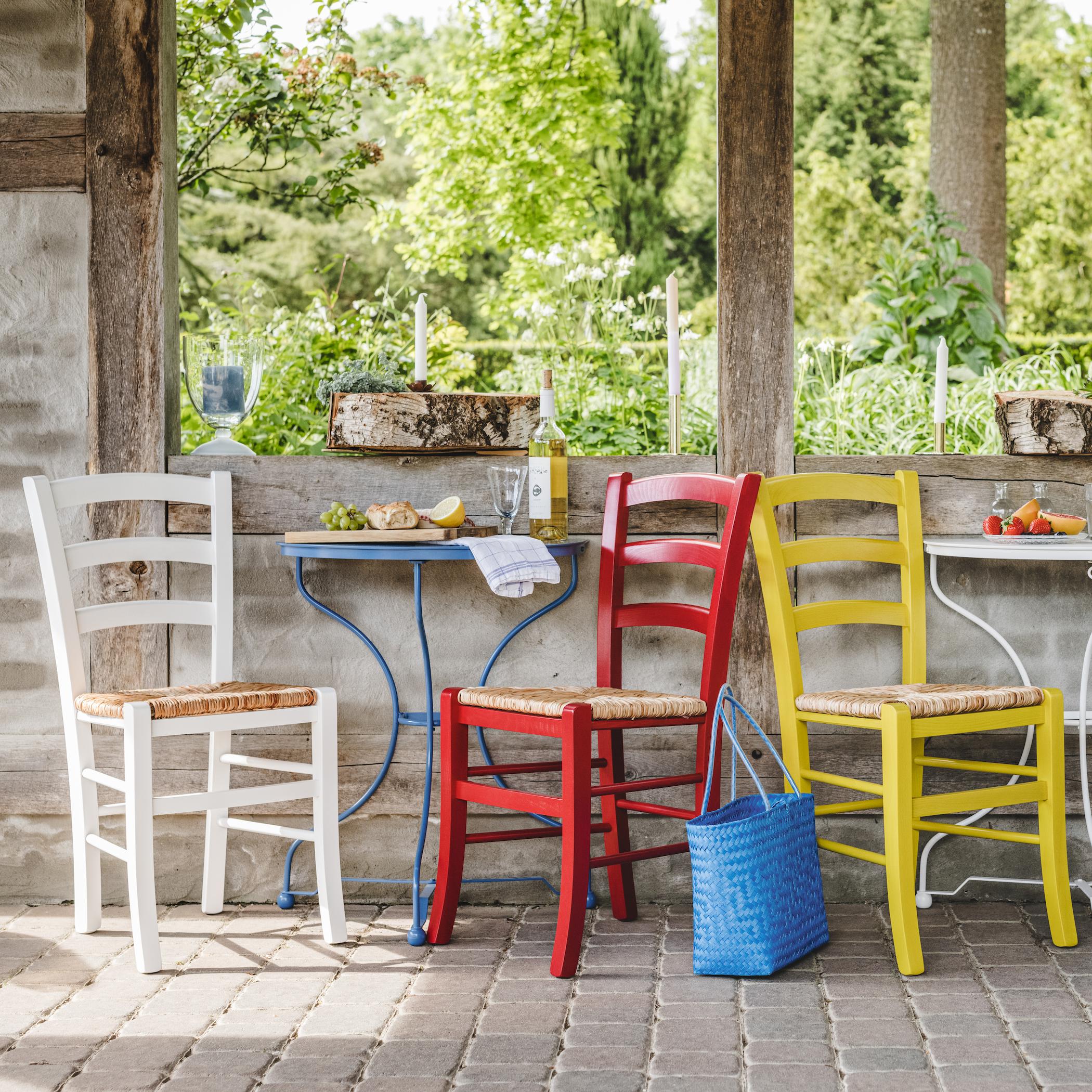 Der Holzstuhl EPIPAROS ist eine Hommage an den griechischen Tavernenstuhl, der in der griechischen Kultur einen besonderen Platz hat und das unverwechselbare mediterrane Lebensgefühl verkörpert. Der farbige Stuhl aus Buchenholz mit Sitz aus Binsengeflecht verleiht jeder Ecke einen einzigartigen Charme – ob auf dem Balkon, im Garten oder im Esszimmer. EPIPAROS kommt in vier verschiedenen Farben, die vielfältige und individuelle Farbkombinationen erlauben - ganz nach deinem Geschmack und deinem Stil.