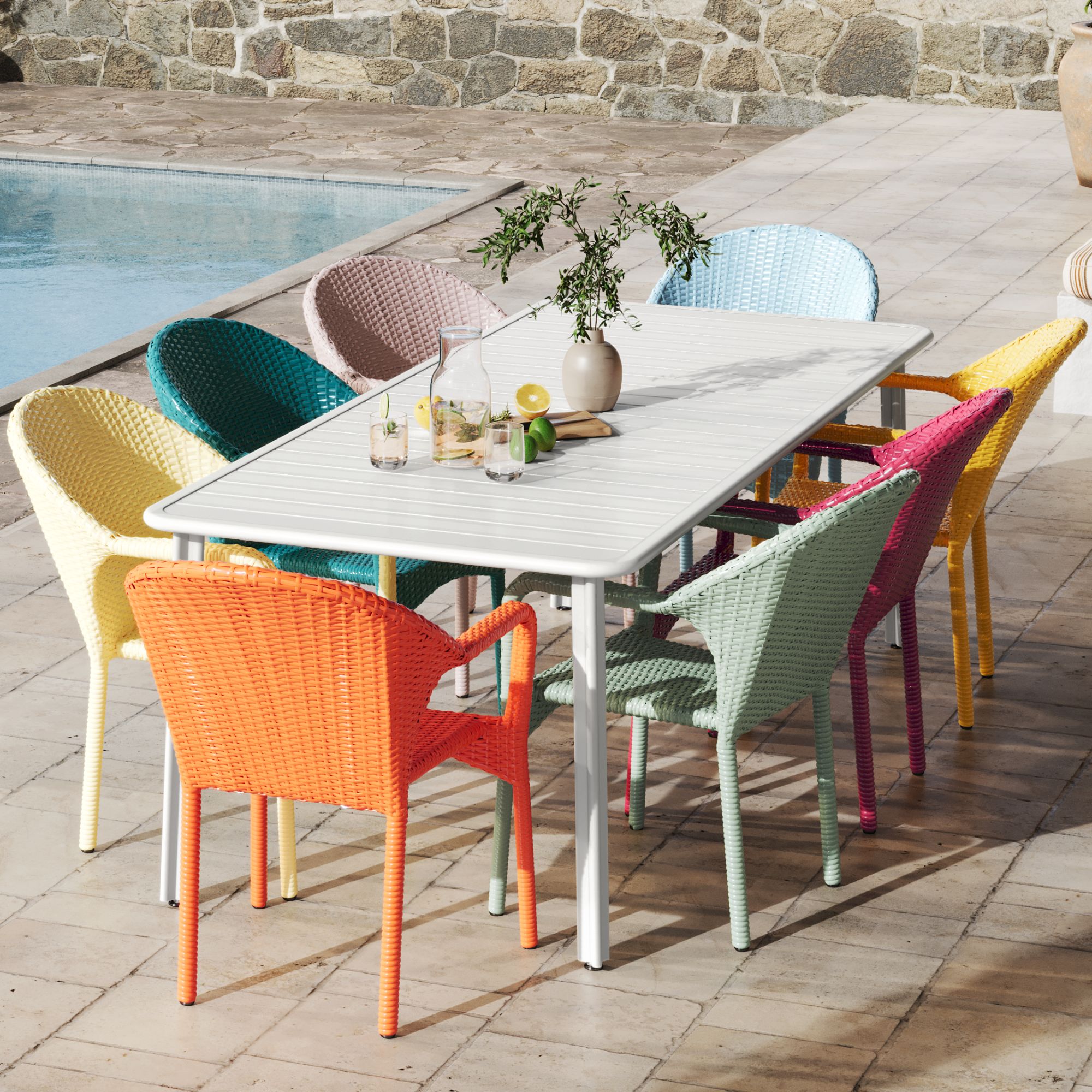 - Der großzügige Tisch bietet Platz für 8 bis 10 Personen, perfekt für Gartenfeste oder große Runden.
