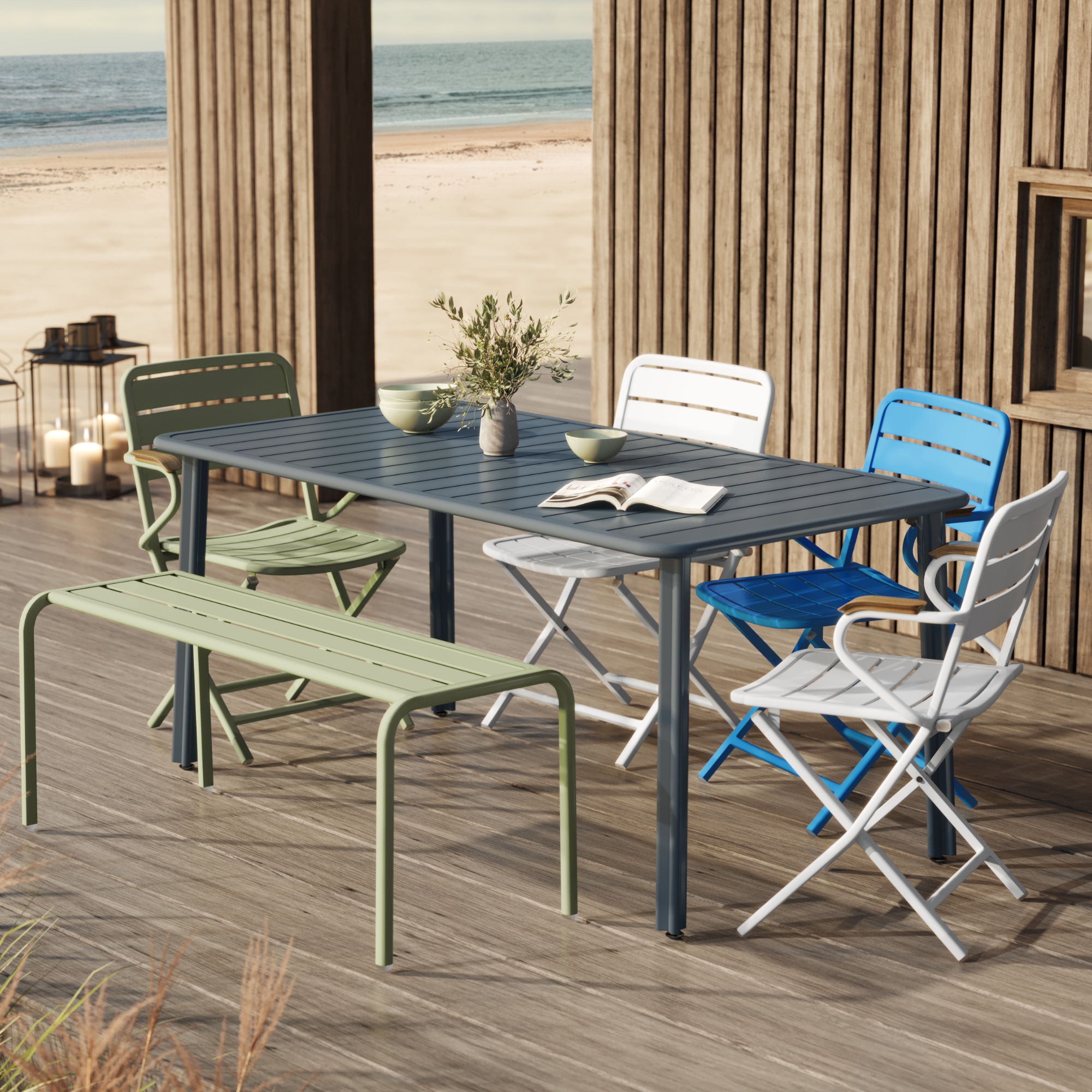 Die Möbel aus der VANZEELAND Kollektion begeistern mit Qualität, Design und Funktionalität. Kombiniere die Tische, Stühle und Sitzbänke miteinander und kreiere einzigartige Farbzusammenstellungen, die deinen Garten oder Balkon zu deiner persönlichen Wohlfühl-Oase machen.