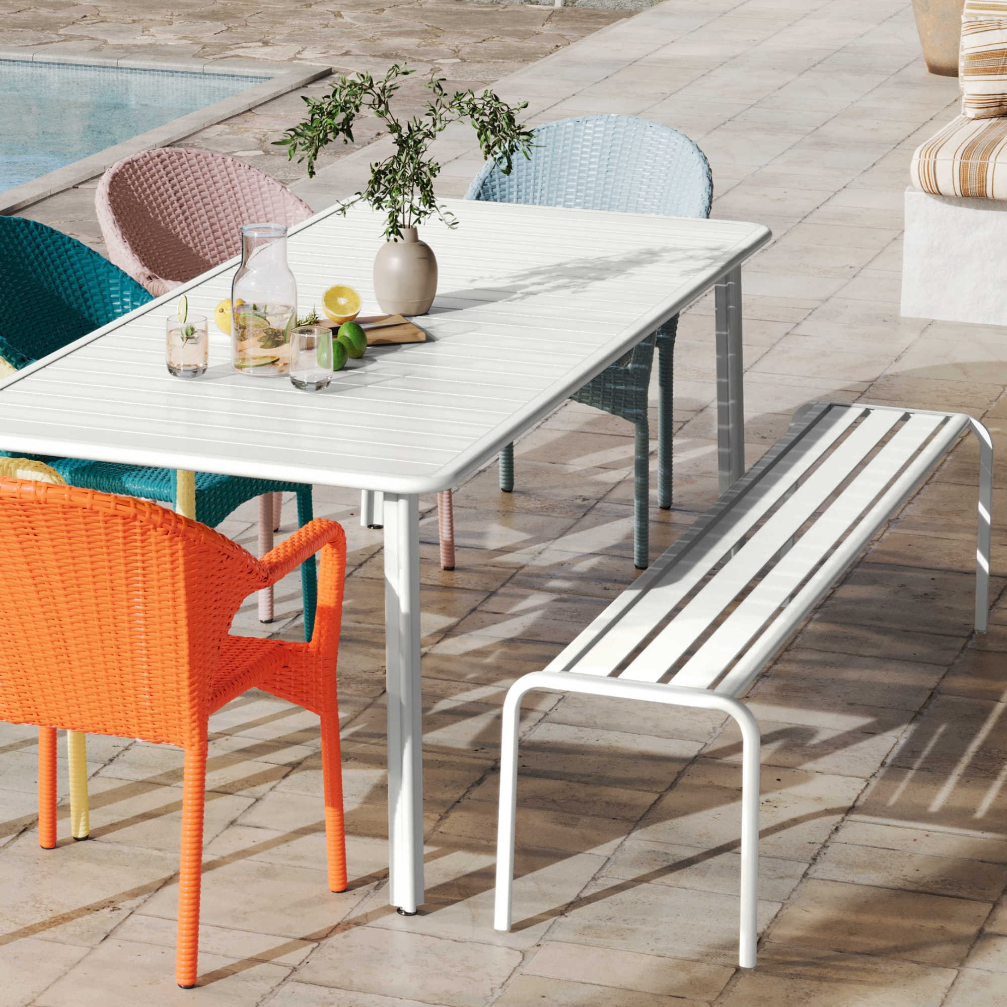 Ihre klaren Linien, schönen Farben und vielfältigen Einsatzmöglichkeiten machen die Sitzbank VANZEELAND zu einem Must-have für alle, die neben der Funktionalität auch auf die Form achten. Die Sitzbank aus Aluminium mit hochwertiger Pulverbeschichtung lässt sich hervorragend mit anderen Lieblingsstücken im Outdoor-Bereich kombinieren. Die abgerundeten Kanten und die stabile, aber dennoch leichte Konstruktion machen die Gartenbank zu einem komfortablen und praktischen Möbelstück auf deiner Terrasse.